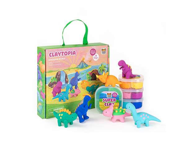 Crea tu propio parque jurásico. Un kit completo de modelado con plastilina que se seca al aire, herramientas y un escenario desplegable para horas de juego simbólico. (+5 años).