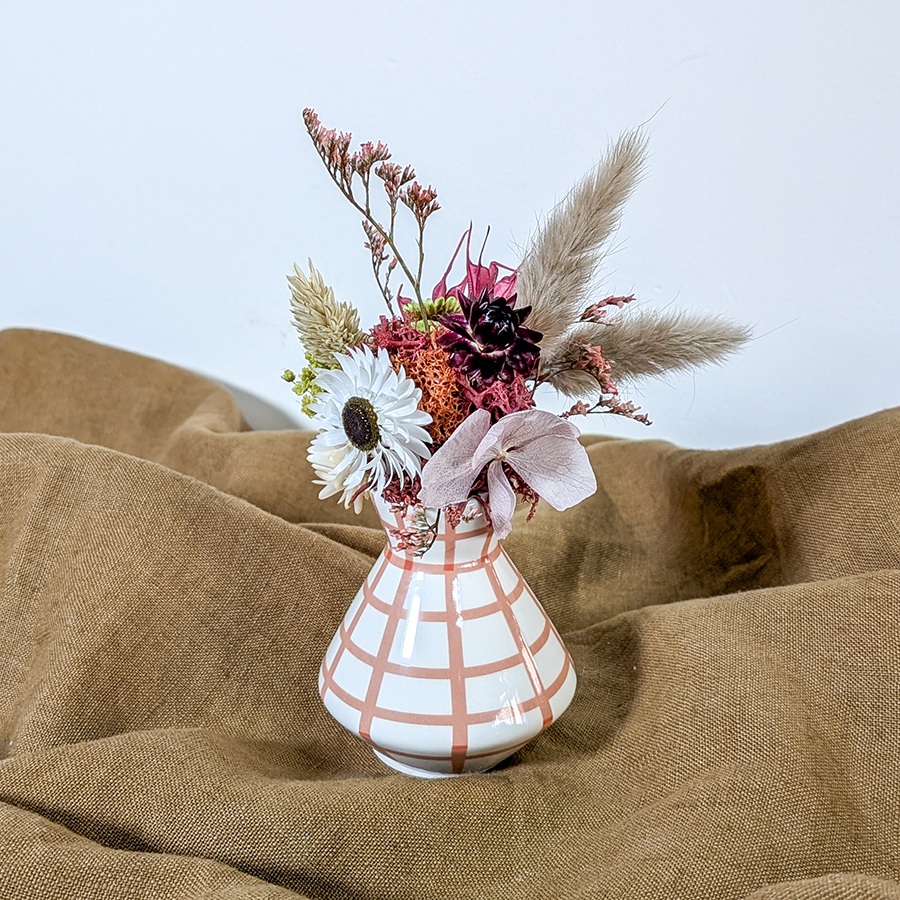Este arreglo floral pertenece a la colección de productos únicos de Klitie. Son arreglos que se conciben como piezas únicas y no como productos para vender en serie